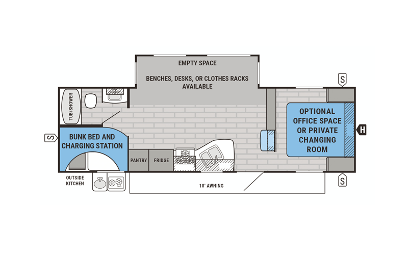 Additionally, a minimum of 20 amps of electricity is required for basic functionality. A minimum of 30 amps is required for all amenities to function. Some units are outfitted with solar systems and batteries. This allows for basic use of the trailer without electrical hookups. In those cases, the heating, air conditioning, heated water, and fans will not have enough power to work.